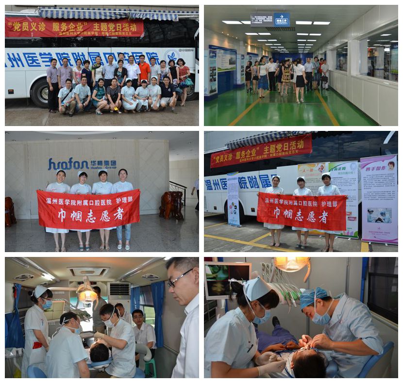 在讲解人员的带领下,党员们通过对华峰集团的职工公寓楼、多功能厅、培训教室、职工俱乐部、职工书屋等的参观,了解了华峰集团的团队学习、品格教育,他们坚持团队分层次培训,突出经验交流、口才表达、分享书籍、文化沙龙等,搭建职工讲坛载体,建立激发职工学习潜能机制,通过学习不断自我超越,培养学习型员工,这给我院党员留下了深刻印象。在参观学习的同时,以麻健丰院长为首的我院口腔党员专家随同医院牙科医疗车为华峰集团的职工免费开展口腔疾病检查和科普知识宣教义诊服务,并为50多名企业员工进行了口腔简单治疗。