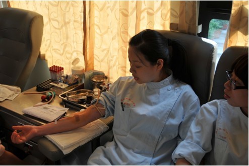 5月7日下午,岗员张晓燕一早便报名了献血活动。这不是她第一次献血,光荣的献血证上记录着她每一次的“爱心”。虽然,常常给病人打针,但她自己却害怕被别人“打针”,当针孔扎入手臂上的静脉时,她忍不住把头偏向一边,紧闭双眼,一脸的紧张。200CC的血液袋被放进储血柜后,她紧皱的眉头才舒展开来。此次参加献血的还有赖晓玲、王小乐、王晶晶、林琛等18位岗员。参加温州市中心血站在温州医学院组织开展的无偿献血活动,表达了职工们的暖暖爱心。经过现场的筛选,本次活动我岗报名的8名岗员中共有5人成功地将暖暖的爱心化作涓涓鲜血,回报社会,帮助他人。3位没能实现献血愿望的同志表示,虽然此次遗憾错过,今后还是会积极参加,奉献社会。